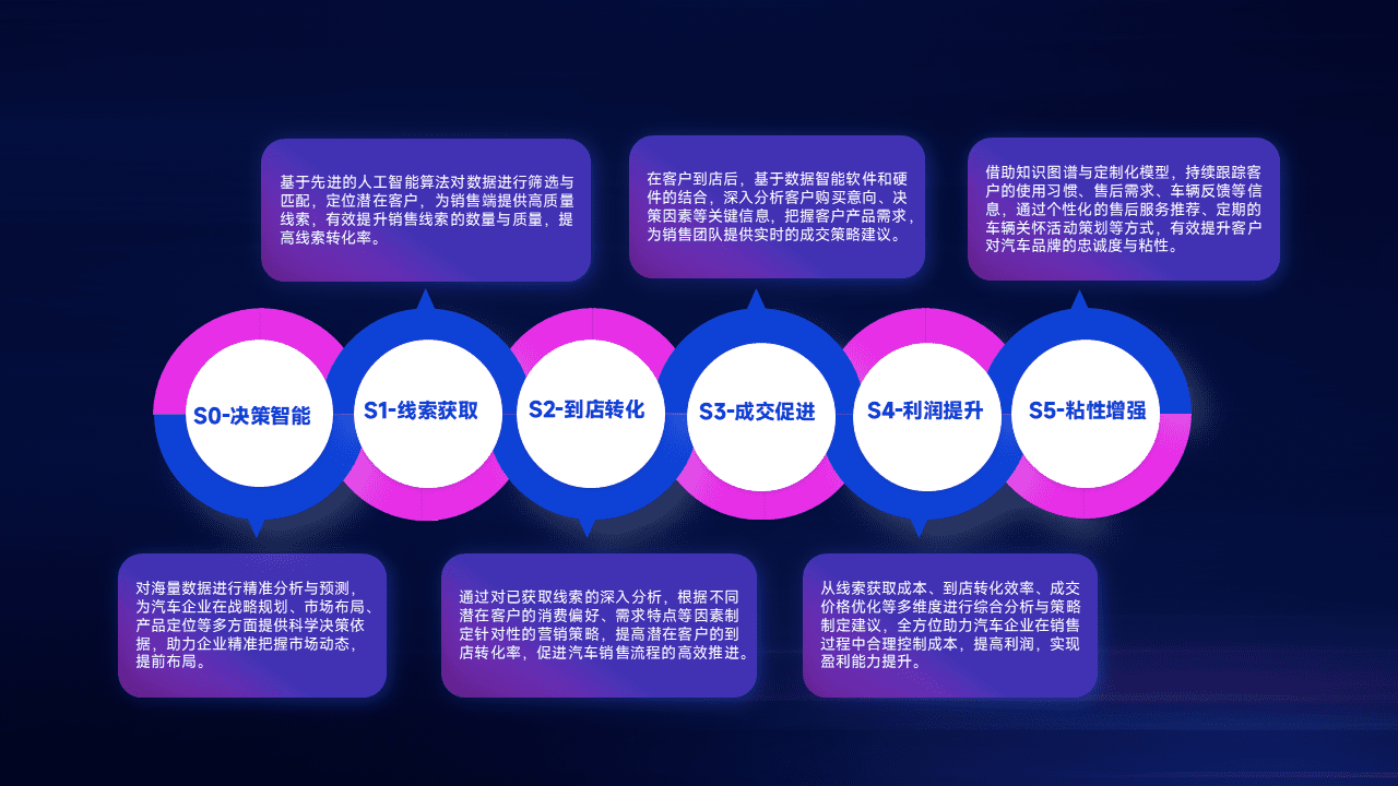 通过拓宽潜在客户来源、、、优化线索分配并提高到店转化率,,,以增强销售效率。。同时,,,利用线索数据不断优化分析模型,,有效提升转化率,,,扩大营销影响力。。。。